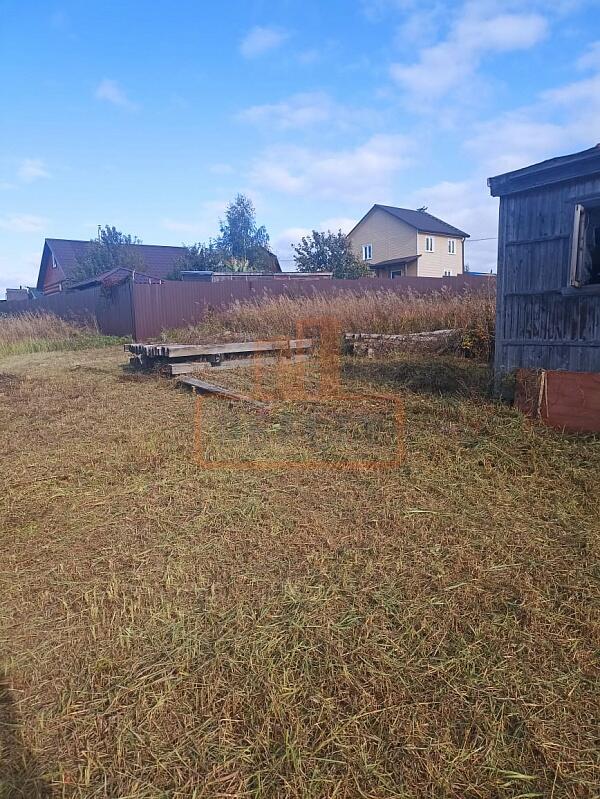 На участке расположен бытовой домик, который можно использовать для хранения или временного проживания.