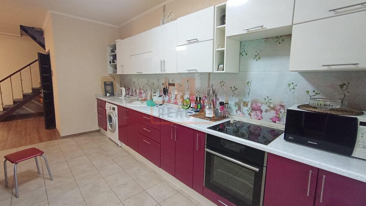 Продается 3-х этажный жилой дом, 100,1 кв.м. ( таунхаус ) с качественным современным ремонтом на ул.Зеленая в городе Чехове. Участок 2 сотки (ИЖС). Дом из керамзитобетонных блоков, железо - бетонный каркас, фундамент ленточный. Магистральный газ, вода - скважина, канализация - септик, электричество -15 кВт.