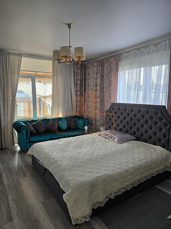 Планировка: кухня-гостиная (22м2), две спальня (20 и 15м2), санузел (12м2), две веранды (без внутренней отделки), прихожая. В доме сделан евроремонт, продаётся с новой мебелью и новой техникой.