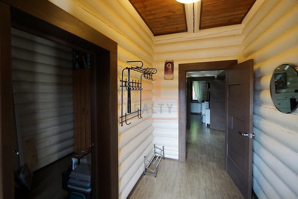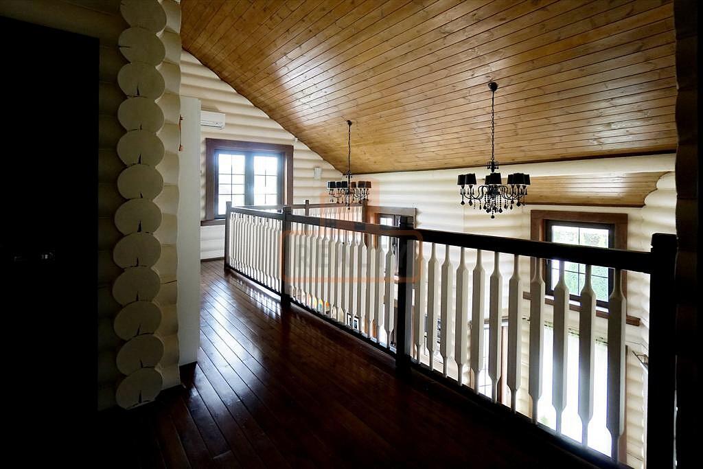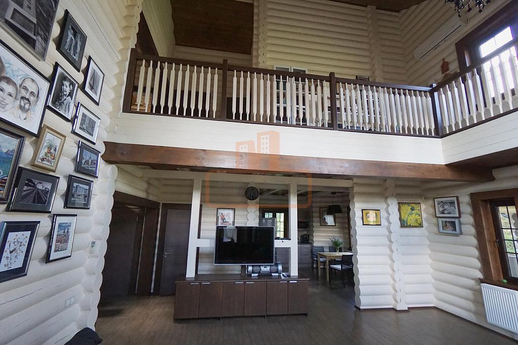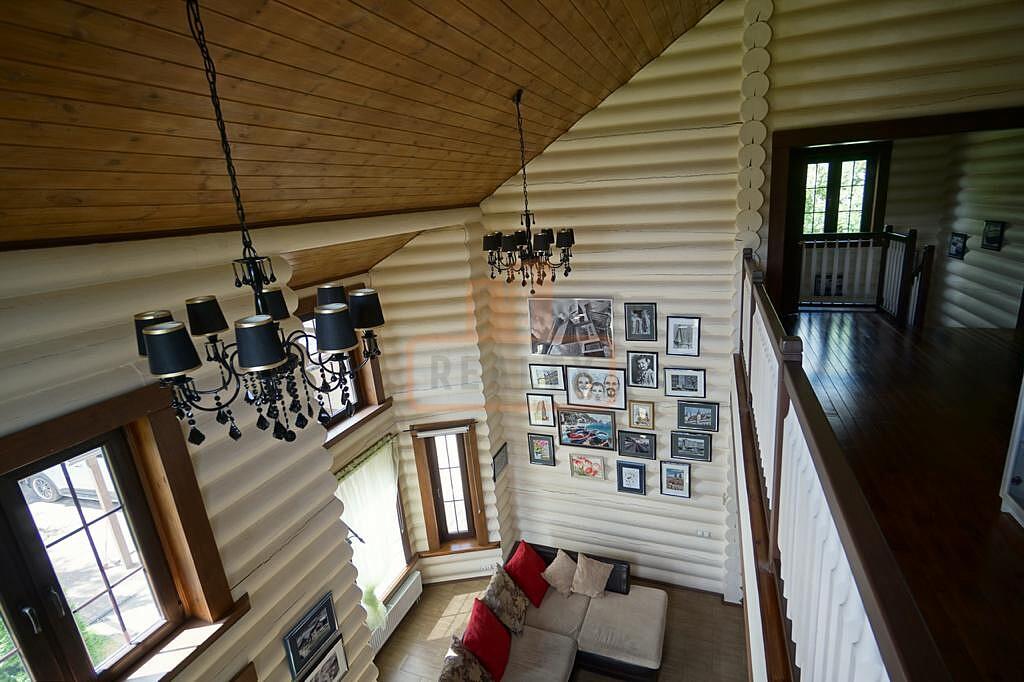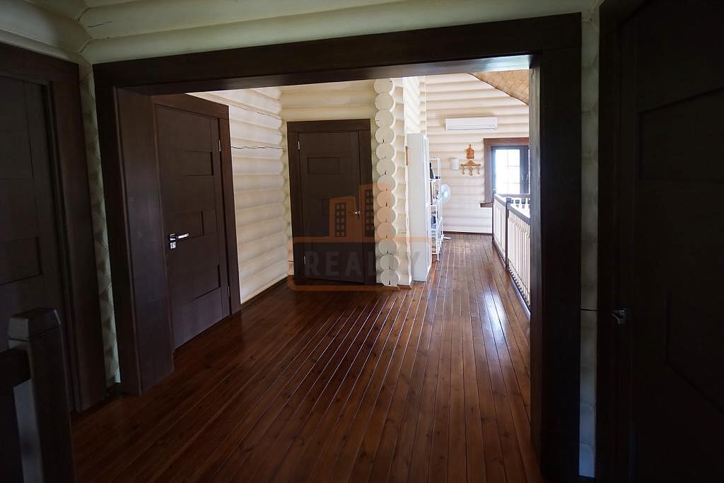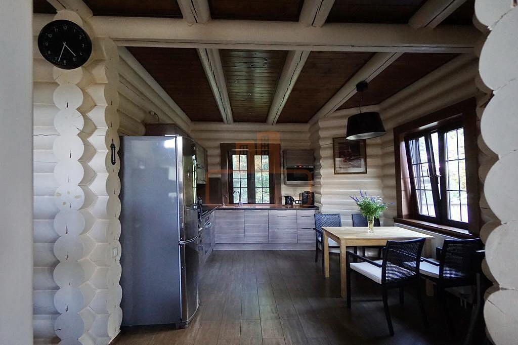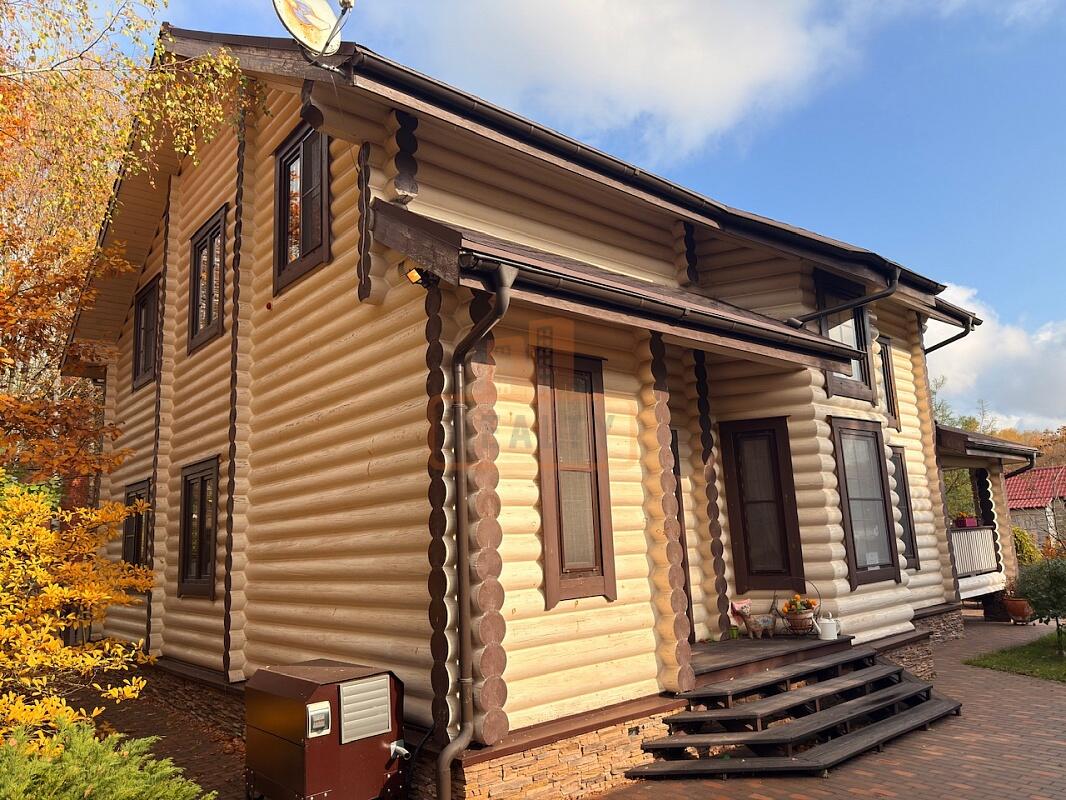 Дом 156,7 кв.м + 24 кв. м. веранда. Дом построен из оцилиндрованного бревна диаметром 22 см, северный зимний лес из Кировской области, фундамент ленточный, залит бетонной плитой. В отдельностоящей котельной заведен магистральный газ. В доме есть система охранной сигнализации с тревожной кнопкой, кондиционеры, теплый пол. Планировка дома: первый этаж — прихожая, подсобное помещение, с/у с ванной, спальня, большая зона гостиной, объединённая с кухней, с большими панорамными окнами и зоной второго света, терраса. Кухня полностью оборудована: холодильник, встроенные духовой шкаф, газовая плита, посудомоечная машина, СВЧ. На втором этаже три спальни и с/у с душевой кабиной.