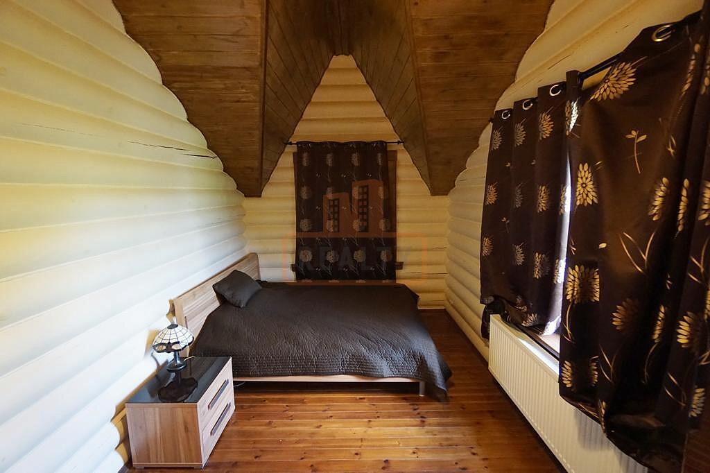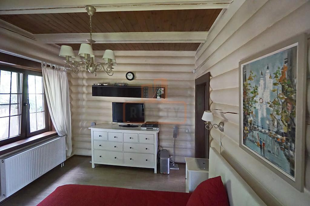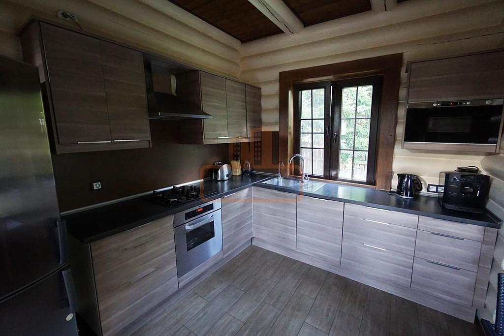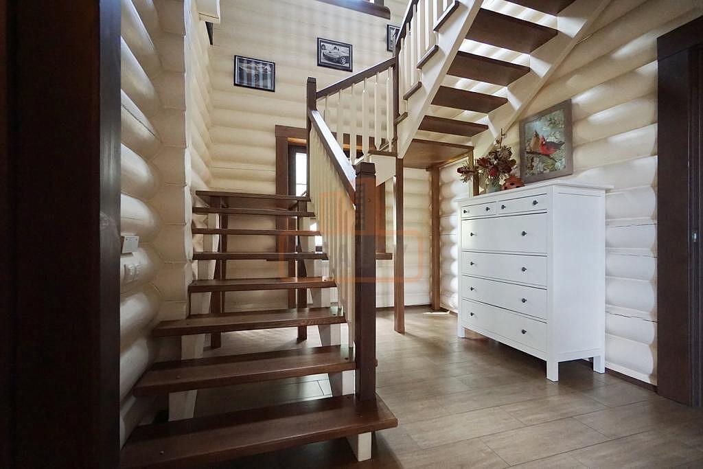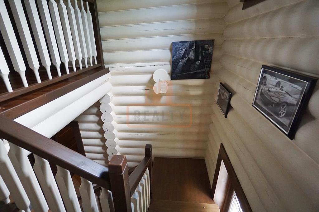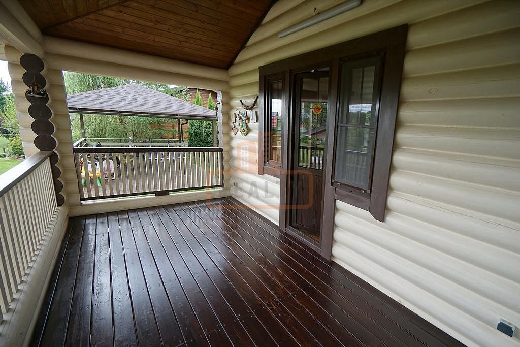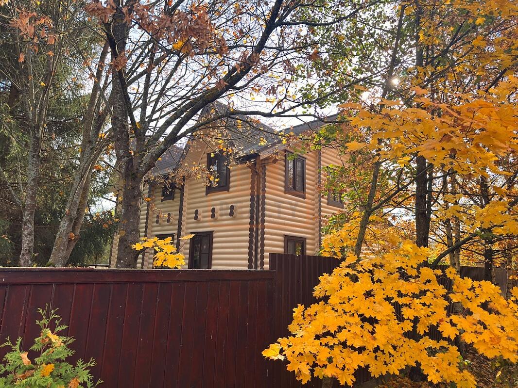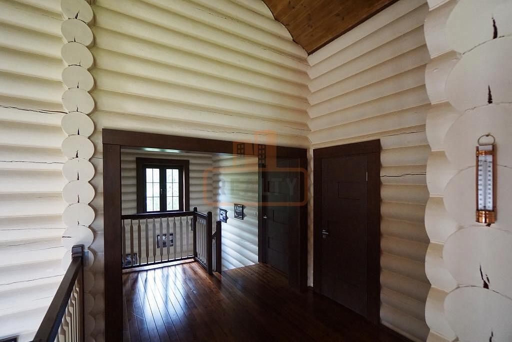 Дом 156,7 кв.м + 24 кв. м. веранда. Дом построен из оцилиндрованного бревна диаметром 22 см, северный зимний лес из Кировской области, фундамент ленточный, залит бетонной плитой. В отдельностоящей котельной заведен магистральный газ. В доме есть система охранной сигнализации с тревожной кнопкой, кондиционеры, теплый пол. Планировка дома: первый этаж — прихожая, подсобное помещение, с/у с ванной, спальня, большая зона гостиной, объединённая с кухней, с большими панорамными окнами и зоной второго света, терраса. Кухня полностью оборудована: холодильник, встроенные духовой шкаф, газовая плита, посудомоечная машина, СВЧ. На втором этаже три спальни и с/у с душевой кабиной.