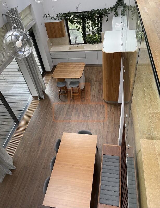 Московская область, Чеховский район, д. Ишино продаётся дом в современном стиле на участке 25 соток. Дом 2х этажный 193 кв м + гостевой дом 90 кв м (из них гараж 40 кв м). В доме 2 этажа, 4 изолированных комнаты, кухня-гостиная, 2 с\у, постирочная, прихожая-тамбур, котельная с отдельным входом. Сердце дома - кухня-гостиная со стеклянной стеной с видом на зеленый сад с цветами, деревьями и кустарниками. Увеличенная инсоляция дома (17 мансардных окон) делает помещение очень светлым в осенне-зимний период и поднимает настроение жителям дома. Потолки первого этажа 2,9 «чистые», гостиная 6м, второй этаж 3 м. Конструктив дома и отделка: жб-фундамент свайно-ростверковый, полнотелый кирпич 25см + утеплитель кам.вата 15см, штукатурка и доска лиственница в наружной отделке. Мансардные Окна с электроприводами Velux (Дания), окна и двери из лиственницы, межкомнатные двери «Своё», алюминиевое фасадное остекление, полы плитка в гостиной и су, паркет в комнатах (ясень). Сантехника Viega. Отопление - магистральный газ, котел buderus 32Кв, резервный электрический котел, в доме радиаторы Arbonia + водяные теплые полы, регулирование температуры с пультов. Вода - скважина + фильтрация до состояния питьевой воды по СанПиН. Канализация - септик Топас. Кровля мягкая черепица Tegola. Отделку дома полностью завершили в конце 2018 года. Гостевой дом в 1 этаж: гараж 42 м, кухня 16м, спальня 16 м, су 4м, подсобные помещения 4м и 8 м. Гостевой дом-гараж - фундаментная ж.б. плита, стены из пеноблока д400, утеплитель пенополистирол, отделка доска сосна. Потолки 3,5 м. Отопление от основной котельной. Гараж эксплуатируется с 2015 года. На участке также есть навес для машин с хоз.сараем и «генераторная» - сарай с генератором. Есть система полива с емкостью 3 куб.м. На участке прокопана система дренажа - вокруг основного дома 1,5м, также смонтирована ливневая канализация для отвода дождевой воды от кровли дома. Прокопаны дренажные траншеи для отвода воды с «лесной» части участка на глубине 1,7м. На участке построена Баня 3х8. Эксклюзивный проект. Отделана полярной сосной "Кело". Отопление -теплый пол (от котла большого дома) + терраса 4х8, (утепленный пол и потолок, остекление из мягких окон по кругу). Барная стойка, лофт освещение . Основная парковка и дорога к гаражу из ж.б. Плиты 15 см, дорожки из брусчатки фирмы Platz. Участок огорожен забором из кирпичных столбов на бетонном основании, заполнение из профлиста с декором их лиственницы, на въезде сдвижные автоматические ворота увеличенной ширины. Локация - 1 час от МКАД по Калужскому или Симферопольскому шоссе. Очень тихое место, большой пруд с пляжем, грибной лес вокруг. Место находится на возвышенности, всегда хорошо продувается. Просмотр в любое удобное для вас время.